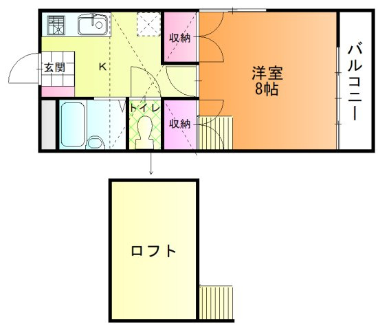 - 陽当り良好 / ガスコンロ設置可 / 仲介手数料無料 / フローリング / ロフト付き / バルコニー / プロパンガス / 公営水道 / 公共下水 / 電気有 / バス・トイレ別 / 洗面台 / エアコン / 角部屋